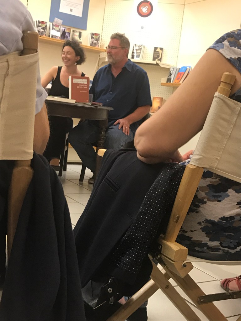 Seconde rencontre avec Pete Fromm. Je n’ai pas résisté à l’envie de retourner le voir, en plus il s’agissait de la dernière rencontre de Clotilde avant qu’elle quitte Gallmeister donc je n’allais pas louper ça. Ce fut une belle soirée estivale avec un auteur toujours aussi souriant et sympathique.