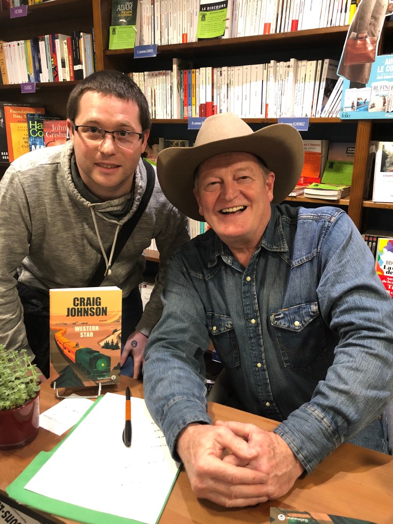 Première soirée d’une série de rencontres sur une quinzaine de jours. On commence donc avec Craig Johnson venu présenter Western Star. J’ai adoré cette rencontre, Craig est super gentil et très drôle, un vrai CowBoy. En plus, en guise de traducteur, Oliver Gallmeister, avec qui j’ai eu la chance de bien discuter. Une soirée de rêve, j’ai adoré.