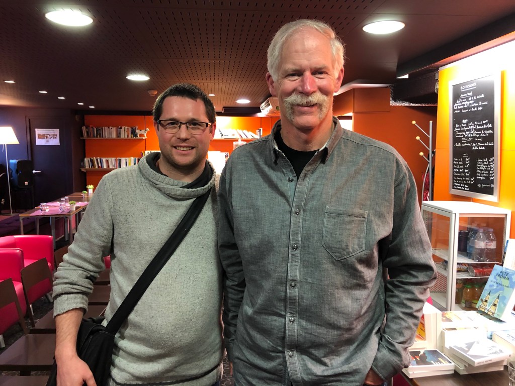 Enfin, j’ai eu la chance de rencontrer Pete Fromm. Quel plaisir de l’entendre parler de son dernier roman, Le lac de nulle part. Et quelle complicité avec Oliver Gallmeister, traducteur de luxe une nouvelle fois. Pete Fromm est adorable et nous a raconté plein d’anecdotes.