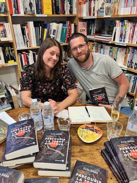 Pas mal de route pour aller rencontrer Erin Swan l’autrice de Parcourir la Terre disparue, une lecture coup de coeur. La rencontre était top. En plus j’y ai rencontré Evelyne, libraire chez La Petite Librairie d’Ars qui est libraire avec sa soeur, toutes deux fans de Gallmeister. J’ai eu la chance de partager le diner avec Erin Swan, Evelyne et les libraires, un moment magique.